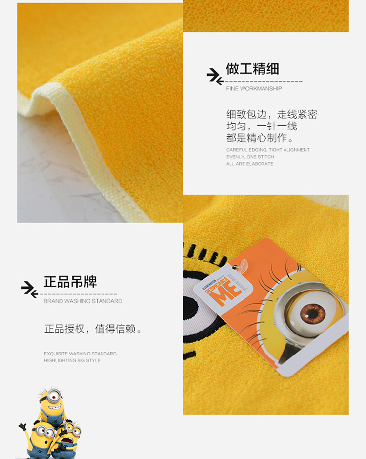 【清潔感・蘭M 600103】清潔感・蘭小黄人子供タオル可愛い純綿アニメ赤ちゃんタオル全綿タオル吸水童巾ベビー用ソフト3本入り53 g/条【相場見積り価格評価】-